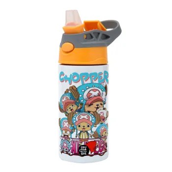 Chopper One Piece, Παιδικό παγούρι θερμό, ανοξείδωτο, με καλαμάκι ασφαλείας, Πορτοκαλί/Γκρι (360ml) BPA-FREE