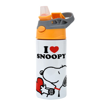 I LOVE SNOOPY, Παιδικό παγούρι θερμό, ανοξείδωτο, με καλαμάκι ασφαλείας, Πορτοκαλί/Γκρι (360ml) BPA-FREE