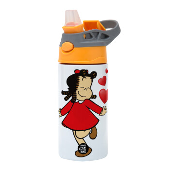 Η μικρή Λουλού, Παιδικό παγούρι θερμό, ανοξείδωτο, με καλαμάκι ασφαλείας, Πορτοκαλί/Γκρι (360ml) BPA-FREE