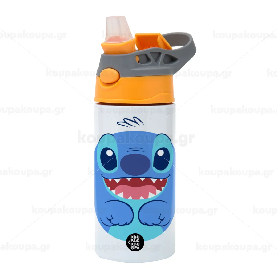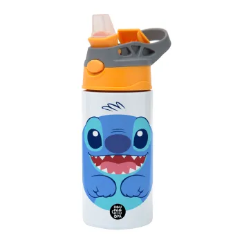 Lilo & Stitch blue, Παιδικό παγούρι θερμό, ανοξείδωτο, με καλαμάκι ασφαλείας, Πορτοκαλί/Γκρι (360ml) BPA-FREE