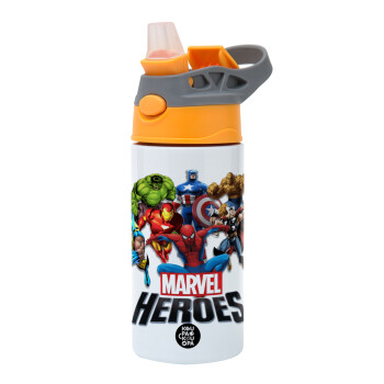 MARVEL heroes, Παιδικό παγούρι θερμό, ανοξείδωτο, με καλαμάκι ασφαλείας, Πορτοκαλί/Γκρι (360ml) BPA-FREE