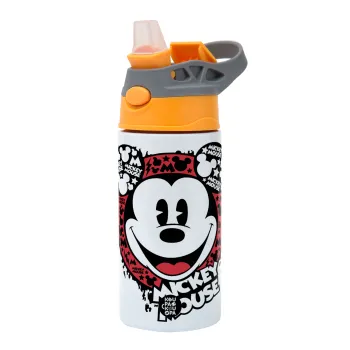 Mickey Mouse, Παιδικό παγούρι θερμό, ανοξείδωτο, με καλαμάκι ασφαλείας, Πορτοκαλί/Γκρι (360ml) BPA-FREE