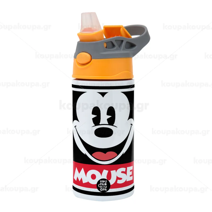 Μίκυ Μάους, Παιδικό παγούρι θερμό, ανοξείδωτο, με καλαμάκι ασφαλείας, Πορτοκαλί/Γκρι (360ml) BPA-FREE