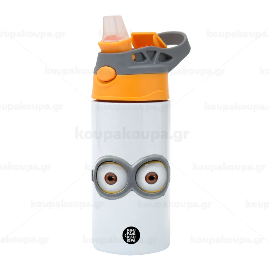 Minions, Παιδικό παγούρι θερμό, ανοξείδωτο, με καλαμάκι ασφαλείας, Πορτοκαλί/Γκρι (360ml) BPA-FREE