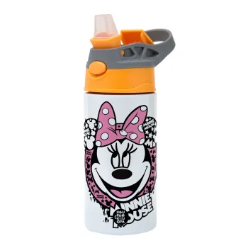 Minnie mouse, Παιδικό παγούρι θερμό, ανοξείδωτο, με καλαμάκι ασφαλείας, Πορτοκαλί/Γκρι (360ml) BPA-FREE