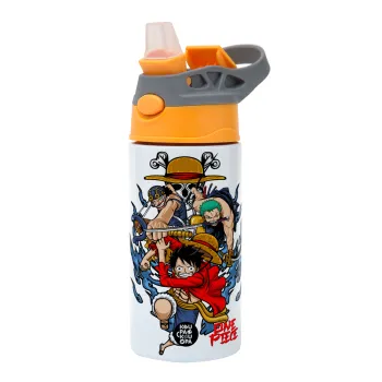 One Piece, Παιδικό παγούρι θερμό, ανοξείδωτο, με καλαμάκι ασφαλείας, Πορτοκαλί/Γκρι (360ml) BPA-FREE