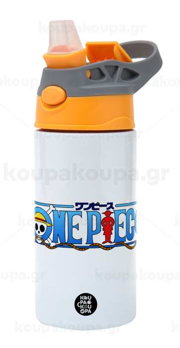 Onepiece logo, Παιδικό παγούρι θερμό, ανοξείδωτο, με καλαμάκι ασφαλείας, Πορτοκαλί/Γκρι (360ml) BPA-FREE