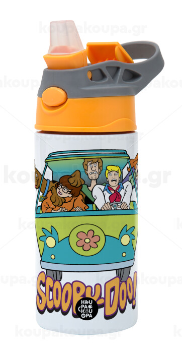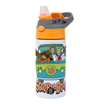 Scooby Doo car, Παιδικό παγούρι θερμό, ανοξείδωτο, με καλαμάκι ασφαλείας, Πορτοκαλί/Γκρι (360ml) BPA-FREE