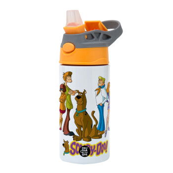 Scooby Doo Characters, Παιδικό παγούρι θερμό, ανοξείδωτο, με καλαμάκι ασφαλείας, Πορτοκαλί/Γκρι (360ml) BPA-FREE