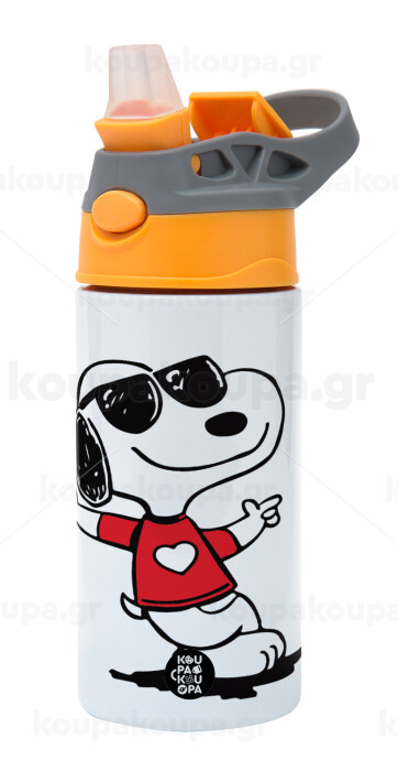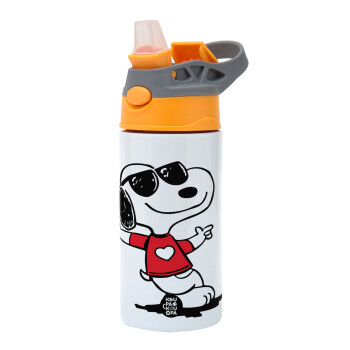Snoopy καρδούλα, Παιδικό παγούρι θερμό, ανοξείδωτο, με καλαμάκι ασφαλείας, Πορτοκαλί/Γκρι (360ml) BPA-FREE