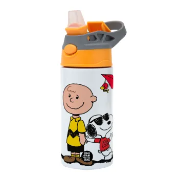 Snoopy & Joe, Παιδικό παγούρι θερμό, ανοξείδωτο, με καλαμάκι ασφαλείας, Πορτοκαλί/Γκρι (360ml) BPA-FREE