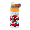 Spiderman flying, Παιδικό παγούρι θερμό, ανοξείδωτο, με καλαμάκι ασφαλείας, Πορτοκαλί/Γκρι (360ml) BPA-FREE