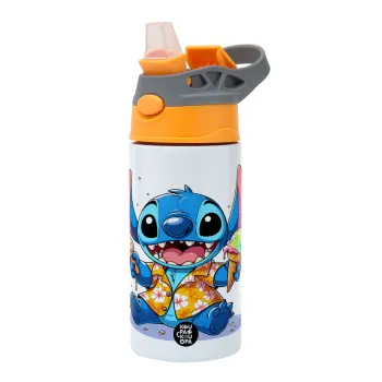 Stitch Ice cream, Παιδικό παγούρι θερμό, ανοξείδωτο, με καλαμάκι ασφαλείας, Πορτοκαλί/Γκρι (360ml) BPA-FREE
