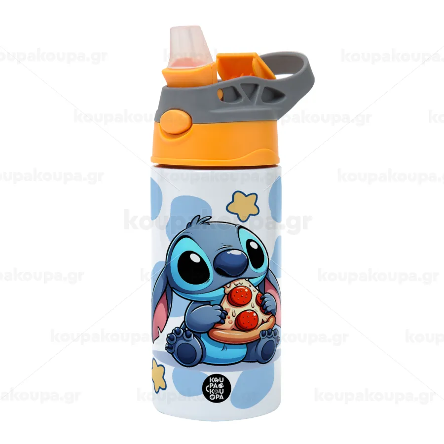 Stitch Pizza, Παιδικό παγούρι θερμό, ανοξείδωτο, με καλαμάκι ασφαλείας, Πορτοκαλί/Γκρι (360ml) BPA-FREE