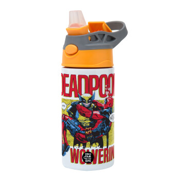 Superhero Deadpool Wolverine, Παιδικό παγούρι θερμό, ανοξείδωτο, με καλαμάκι ασφαλείας, Πορτοκαλί/Γκρι (360ml) BPA-FREE
