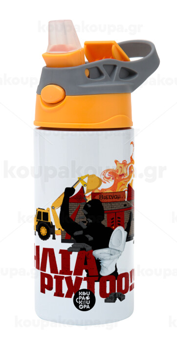 Ηλία ρίχτοοο!!!, Παιδικό παγούρι θερμό, ανοξείδωτο, με καλαμάκι ασφαλείας, Πορτοκαλί/Γκρι (360ml) BPA-FREE