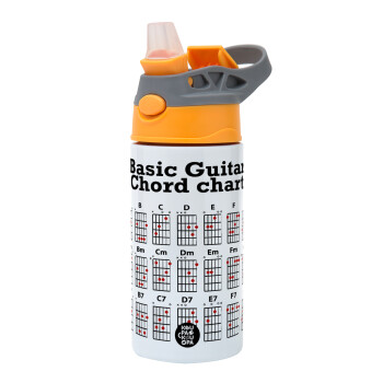 Συγχορδίες κιθάρας, Παιδικό παγούρι θερμό, ανοξείδωτο, με καλαμάκι ασφαλείας, Πορτοκαλί/Γκρι (360ml) BPA-FREE