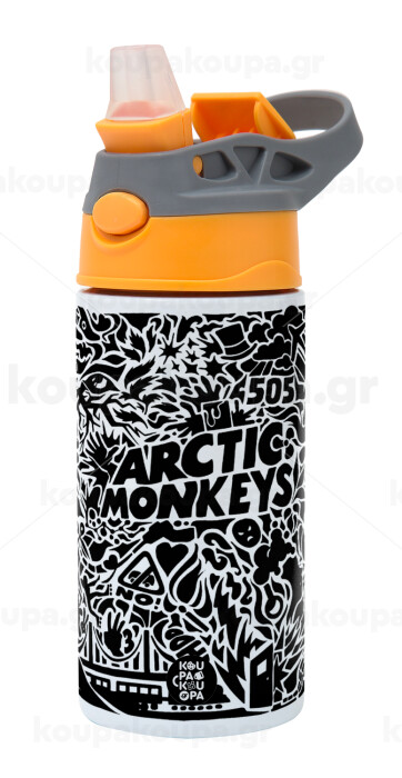 Arctic Monkeys, Παιδικό παγούρι θερμό, ανοξείδωτο, με καλαμάκι ασφαλείας, Πορτοκαλί/Γκρι (360ml) BPA-FREE