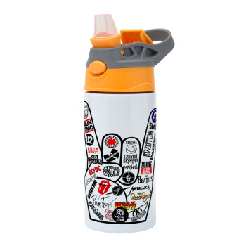 Best Rock Bands hand, Παιδικό παγούρι θερμό, ανοξείδωτο, με καλαμάκι ασφαλείας, Πορτοκαλί/Γκρι (360ml) BPA-FREE