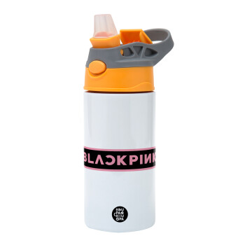 BLACKPINK, Παιδικό παγούρι θερμό, ανοξείδωτο, με καλαμάκι ασφαλείας, Πορτοκαλί/Γκρι (360ml) BPA-FREE