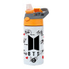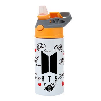 BTS signs, Παιδικό παγούρι θερμό, ανοξείδωτο, με καλαμάκι ασφαλείας, Πορτοκαλί/Γκρι (360ml) BPA-FREE