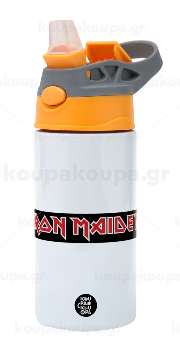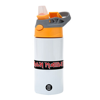 Iron maiden, Παιδικό παγούρι θερμό, ανοξείδωτο, με καλαμάκι ασφαλείας, Πορτοκαλί/Γκρι (360ml) BPA-FREE