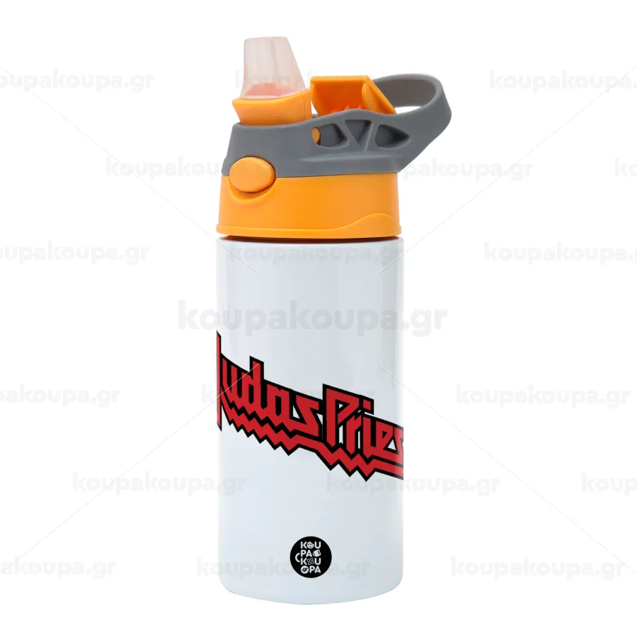 Judas Priest, Παιδικό παγούρι θερμό, ανοξείδωτο, με καλαμάκι ασφαλείας, Πορτοκαλί/Γκρι (360ml) BPA-FREE