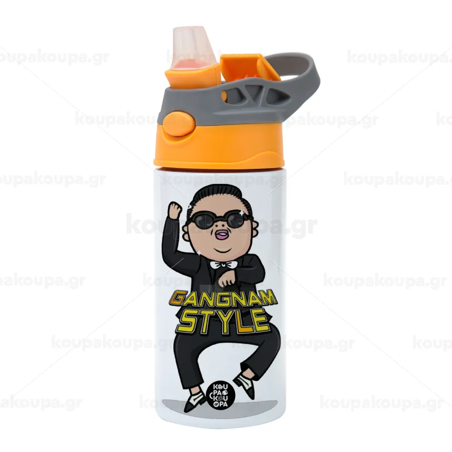 PSY - GANGNAM STYLE, Παιδικό παγούρι θερμό, ανοξείδωτο, με καλαμάκι ασφαλείας, Πορτοκαλί/Γκρι (360ml) BPA-FREE