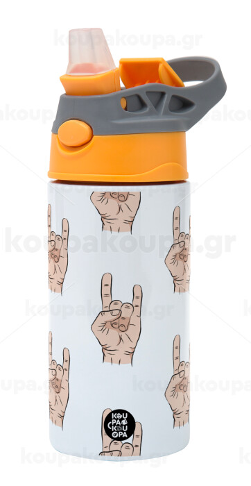 Rock hands, Παιδικό παγούρι θερμό, ανοξείδωτο, με καλαμάκι ασφαλείας, Πορτοκαλί/Γκρι (360ml) BPA-FREE