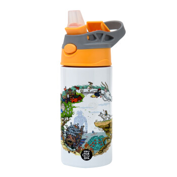 Στούδιο Γκίβλι, Παιδικό παγούρι θερμό, ανοξείδωτο, με καλαμάκι ασφαλείας, Πορτοκαλί/Γκρι (360ml) BPA-FREE