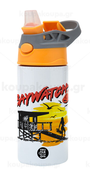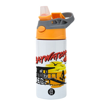 Baywatch, Παιδικό παγούρι θερμό, ανοξείδωτο, με καλαμάκι ασφαλείας, Πορτοκαλί/Γκρι (360ml) BPA-FREE