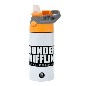 Dunder Mifflin, Inc Paper Company, Παιδικό παγούρι θερμό, ανοξείδωτο, με καλαμάκι ασφαλείας, Πορτοκαλί/Γκρι (360ml) BPA-FREE