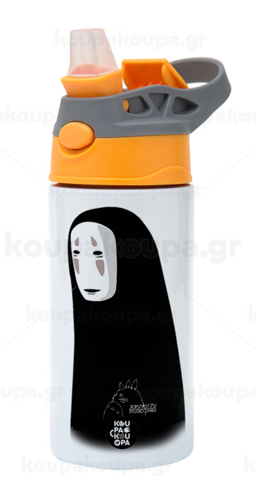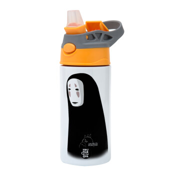 Spirited Away No Face, Παιδικό παγούρι θερμό, ανοξείδωτο, με καλαμάκι ασφαλείας, Πορτοκαλί/Γκρι (360ml) BPA-FREE
