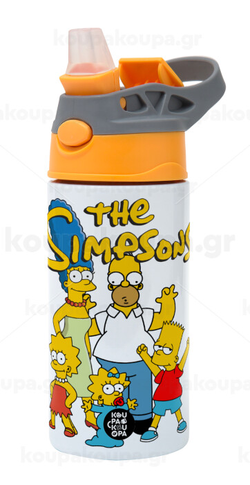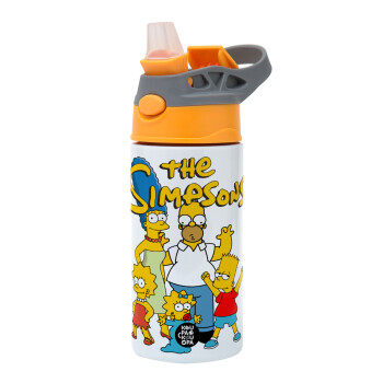 The Simpsons, Παιδικό παγούρι θερμό, ανοξείδωτο, με καλαμάκι ασφαλείας, Πορτοκαλί/Γκρι (360ml) BPA-FREE