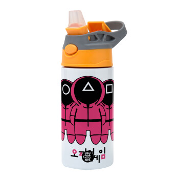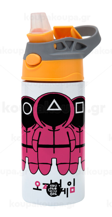 The squid game, Παιδικό παγούρι θερμό, ανοξείδωτο, με καλαμάκι ασφαλείας, Πορτοκαλί/Γκρι (360ml) BPA-FREE