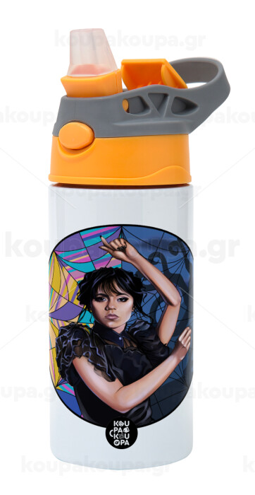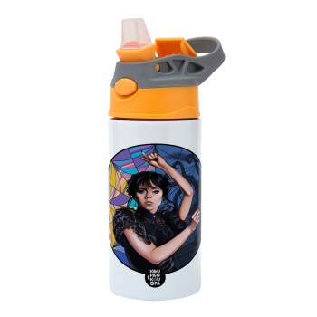 Wednesday dance, Παιδικό παγούρι θερμό, ανοξείδωτο, με καλαμάκι ασφαλείας, Πορτοκαλί/Γκρι (360ml) BPA-FREE