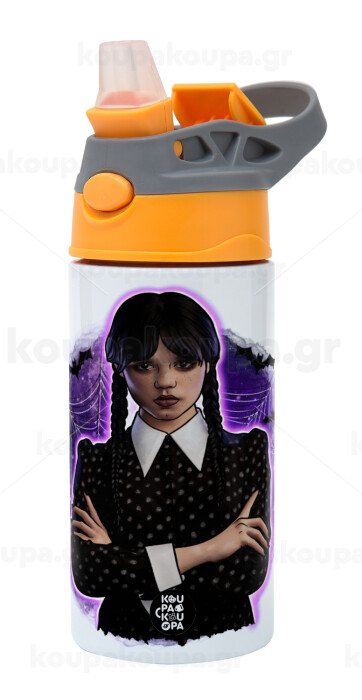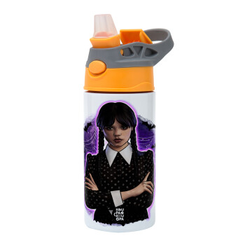 Wednesday moonlight, Παιδικό παγούρι θερμό, ανοξείδωτο, με καλαμάκι ασφαλείας, Πορτοκαλί/Γκρι (360ml) BPA-FREE