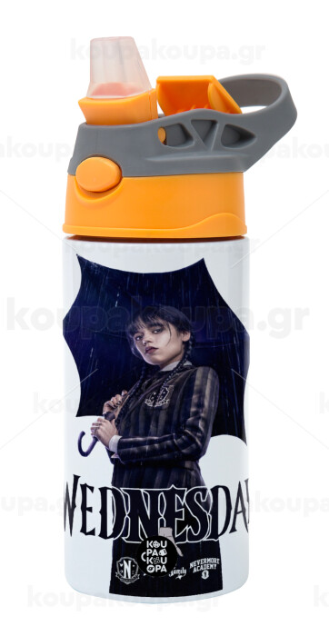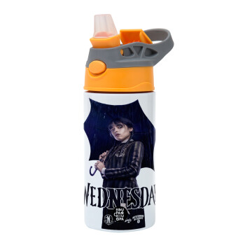 Wednesday rain, Παιδικό παγούρι θερμό, ανοξείδωτο, με καλαμάκι ασφαλείας, Πορτοκαλί/Γκρι (360ml) BPA-FREE