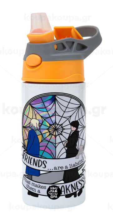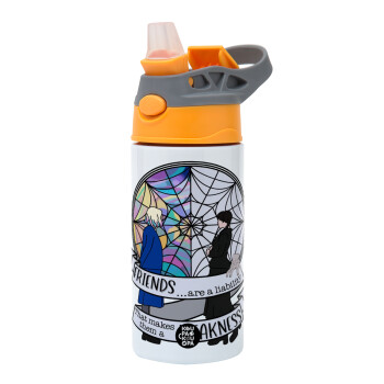 Wednesday window, Παιδικό παγούρι θερμό, ανοξείδωτο, με καλαμάκι ασφαλείας, Πορτοκαλί/Γκρι (360ml) BPA-FREE