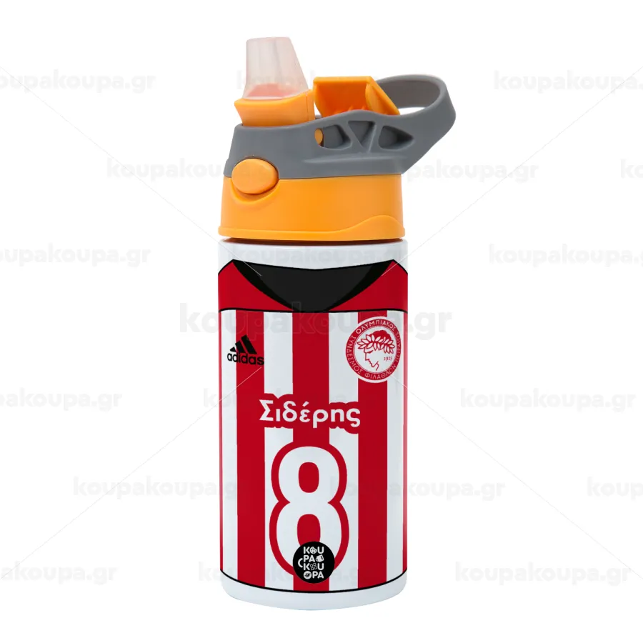 Ολυμπιακός εμφάνιση, Παιδικό παγούρι θερμό, ανοξείδωτο, με καλαμάκι ασφαλείας, Πορτοκαλί/Γκρι (360ml) BPA-FREE