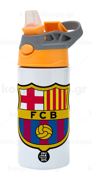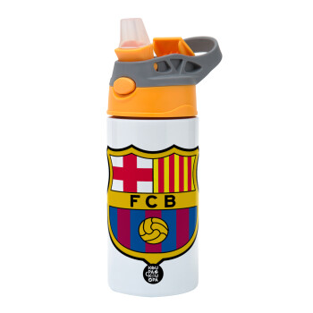 Barcelona FC, Παιδικό παγούρι θερμό, ανοξείδωτο, με καλαμάκι ασφαλείας, Πορτοκαλί/Γκρι (360ml) BPA-FREE