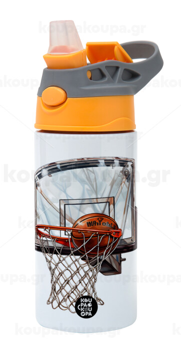 Basketball, Παιδικό παγούρι θερμό, ανοξείδωτο, με καλαμάκι ασφαλείας, Πορτοκαλί/Γκρι (360ml) BPA-FREE
