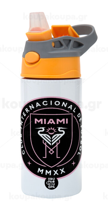 Ίντερ Μαϊάμι (Inter Miami CF), Παιδικό παγούρι θερμό, ανοξείδωτο, με καλαμάκι ασφαλείας, Πορτοκαλί/Γκρι (360ml) BPA-FREE