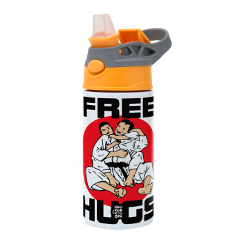 JUDO free hugs, Παιδικό παγούρι θερμό, ανοξείδωτο, με καλαμάκι ασφαλείας, Πορτοκαλί/Γκρι (360ml) BPA-FREE