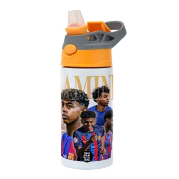 lamine yamal FCB, Παιδικό παγούρι θερμό, ανοξείδωτο, με καλαμάκι ασφαλείας, Πορτοκαλί/Γκρι (360ml) BPA-FREE