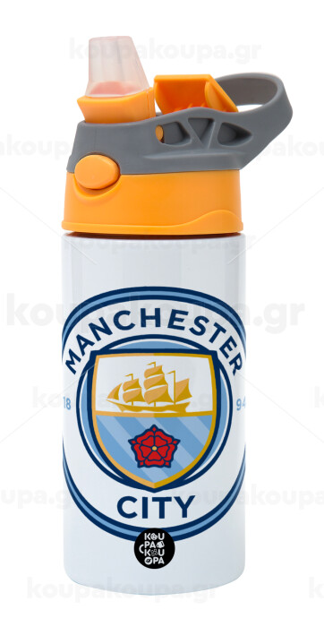 Manchester City FC , Παιδικό παγούρι θερμό, ανοξείδωτο, με καλαμάκι ασφαλείας, Πορτοκαλί/Γκρι (360ml) BPA-FREE