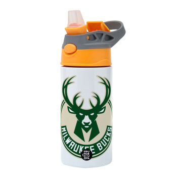 Milwaukee bucks, Παιδικό παγούρι θερμό, ανοξείδωτο, με καλαμάκι ασφαλείας, Πορτοκαλί/Γκρι (360ml) BPA-FREE