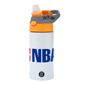 NBA, Παιδικό παγούρι θερμό, ανοξείδωτο, με καλαμάκι ασφαλείας, Πορτοκαλί/Γκρι (360ml) BPA-FREE