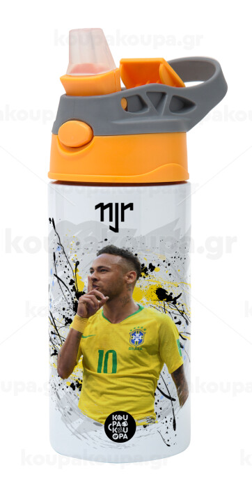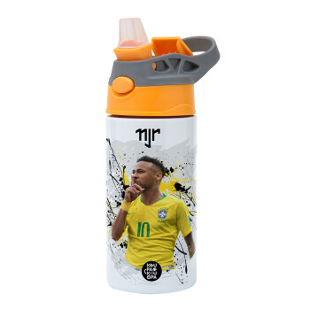 Neymar JR, Παιδικό παγούρι θερμό, ανοξείδωτο, με καλαμάκι ασφαλείας, Πορτοκαλί/Γκρι (360ml) BPA-FREE