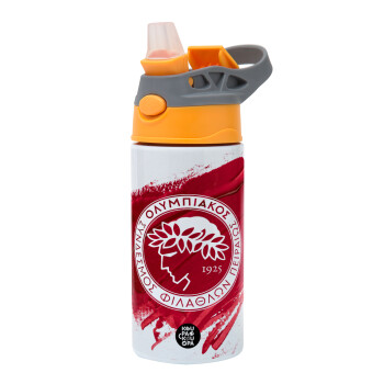 Olympiacos F.C., Παιδικό παγούρι θερμό, ανοξείδωτο, με καλαμάκι ασφαλείας, Πορτοκαλί/Γκρι (360ml) BPA-FREE